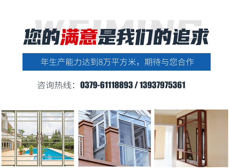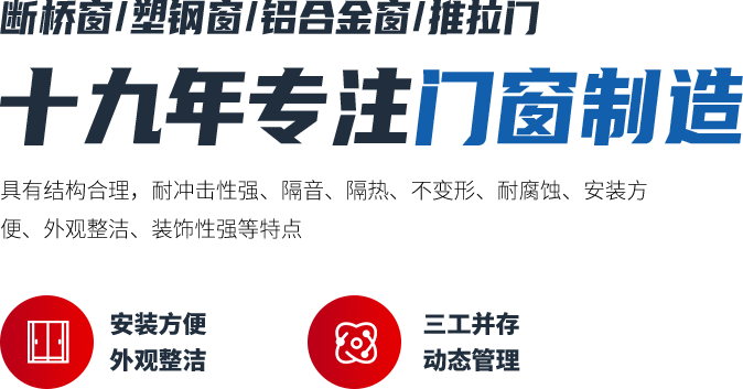 主要生產鋁合金窗、斷橋窗、幕墻、塑鋼窗和各種異形窗、推拉門、防火窗等